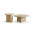| Enhance your interior with the organic elegance of these natural travertine tables, available in both coffee and side table sizes. Each piece features a distinct cross-pedestal base and a rounded stone top, showcasing the unique mineral textures inherent in authentic travertine. These versatile accents bring a grounded, architectural feel to any modern living space, whether styled individually or as a tiered pair. | |