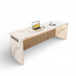 A modern kitchen island featuring vertical slat design, creating dynamic light and shadow effects with distinctive visual depth.